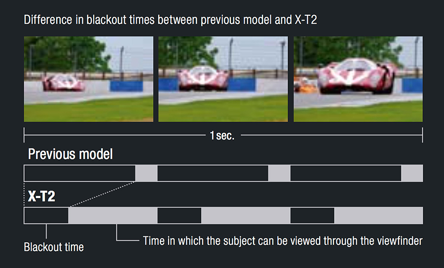 Fujifilm X-T2 prichádza s inovovaným overeným systémom automatického zaostrovania, ktorý bol najväčšou slabinou predošlých modelov systémových fotoaparátov FinePix rady X. Nový inteligentný automatický zaostrovací systém prichádza s novou hybridnou technológiou, ktorá prináša najrýchlejší AF s rýchlosťou zaostrenia do 0,06s. Hybridná technológia zaostrovania je založená na kombinácii klasickej fázovej detekcie a kontrastnej detekcie. Pre vysokorýchlostné AF zaostrovanie sa prednostne používa pokročilý snímač fázovej detekcie s podporou kontrastnej detekcie. Pri zaostrovaní v tmavých priestoroch prípadne za veľmi nízkej hladiny osvetlenia je prednostne využívaná práve detekcia kontrastu priamo na snímači čo Vám zaručí rýchle a presné zaostrenie. Precízne zaostrovanie riadi novovyvinutý inteligentný algoritmus zaostrovania, ktorý okrem zvýšenia presnosti zvyšuje aj rýchlosť zaostrenia pri fotografovaní objektov s malým kontrastom a v situáciach s nedostatkom svetla. Vďaka tomuto novému hybridnému zaostrovaciemu systému už pre vás nebude problém fotografovať momentky, alebo iné rýchlo plynúce deje.