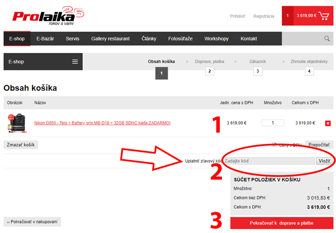 1. Vložte do košíka tovar a pristúpte k objednávke