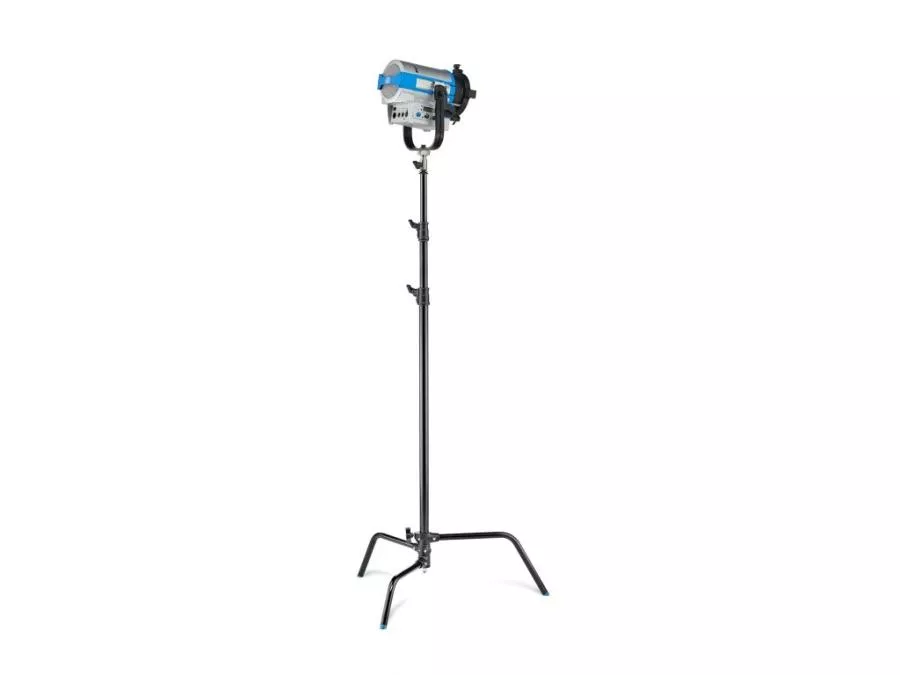 Pochrómovaný oceľový stojan v čiernom prevedení s 3 sekciami a 2 stúpačkami. Nohy sú zložené naplocho pre ľahké skladovanie. Tento stojan má maximálne užitočné zaťaženie 10 kg a maximálnu výšku 3,28 m. Má jednu posuvnú nohu pre jednoduché použitie na nerovnom povrchu.