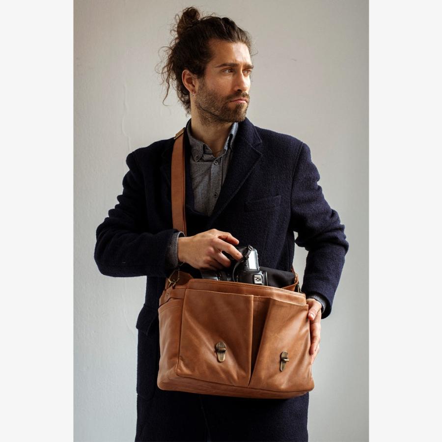 - Bronkey Roma Brown Tanned leather Camera Bag new