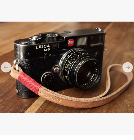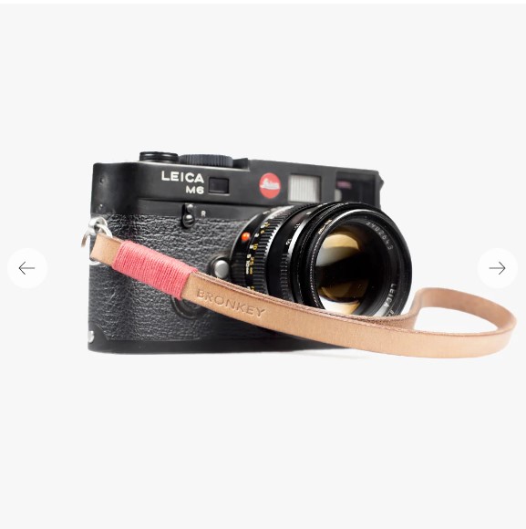 Kožený remienok na zápästie fotoaparátu.