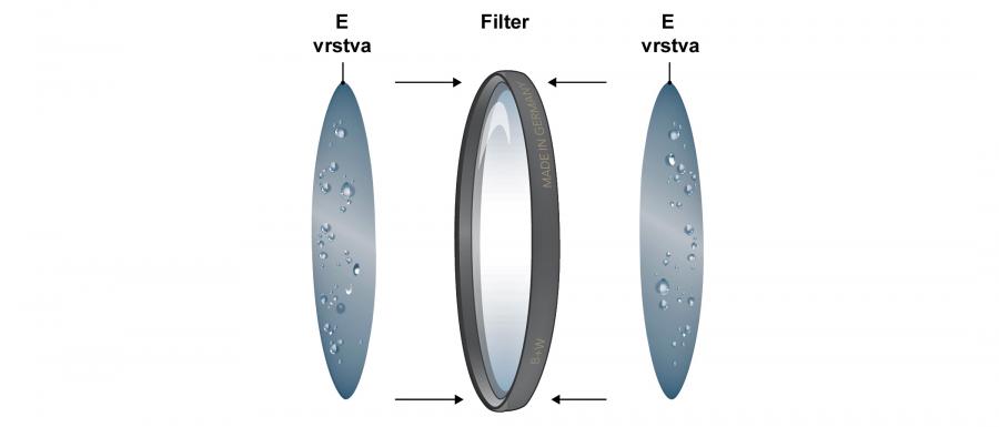 - vniknutie vlhkosti medzi optické sklá filtrov rady Käsemann