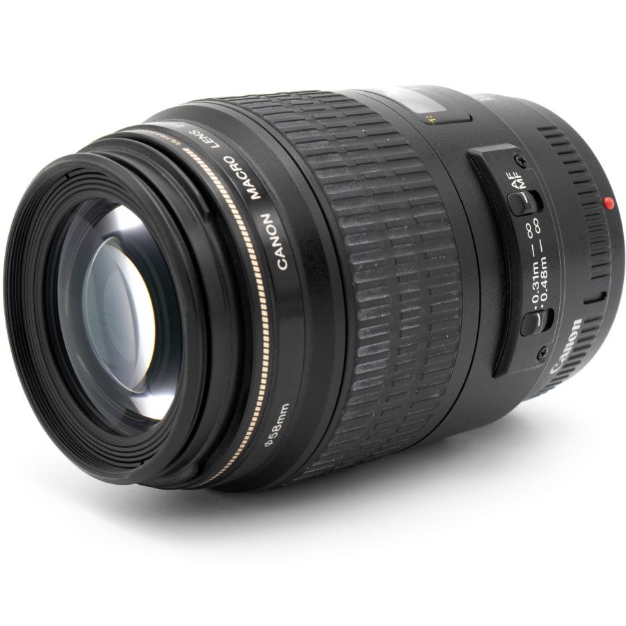 Makro objektív vhodný pre kinofilmové aj digitálne zrkadlovky Canon. Pomer zväčšenia 1:1. Výborný aj pre portrétnu fotografiu. Dosahuje vysokú ostrosť, rozlišovaciu schopnosť a kontrast v celom poli záberu. Trojitá plávajúca optická sústava zabezpečuje vynikajúcu ostrú kresbu pri všetkých zaostrovacích vzdialenostiach. Zaostrovací motor USM pre rýchle a tiché automatické zaostrovanie.