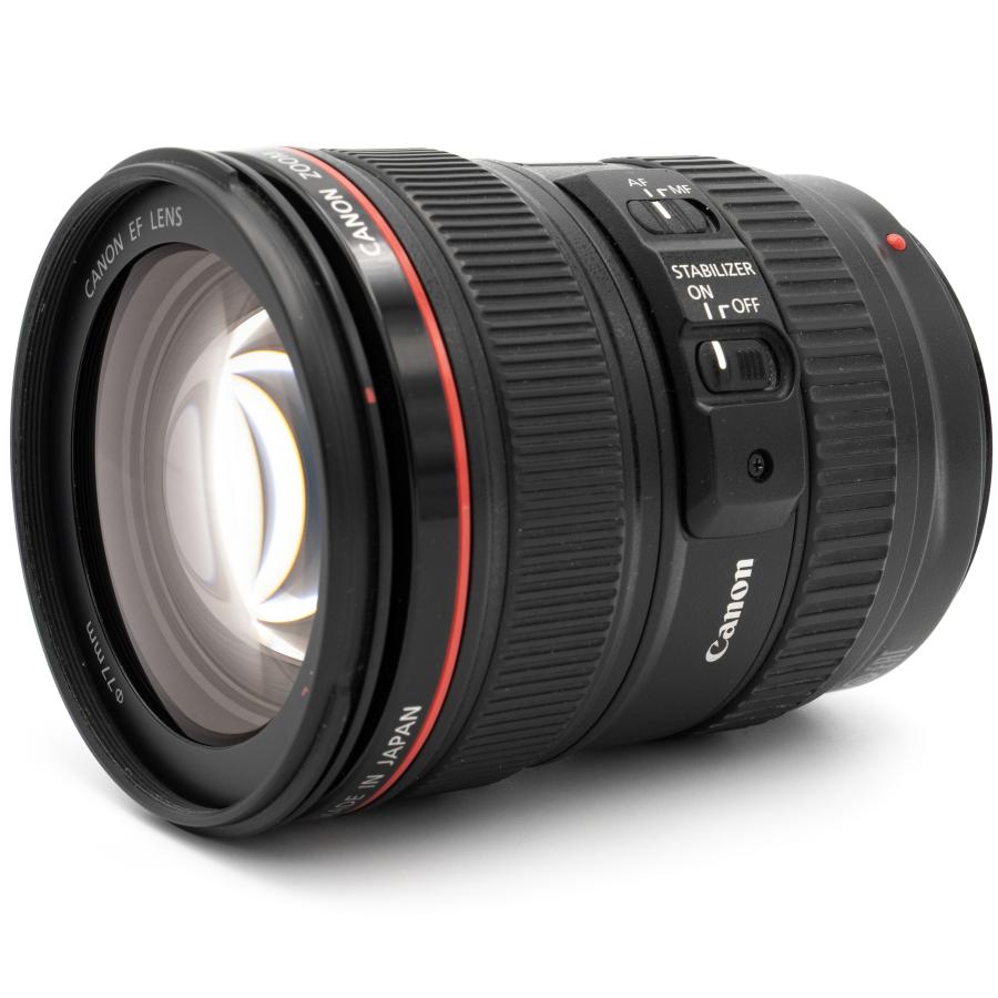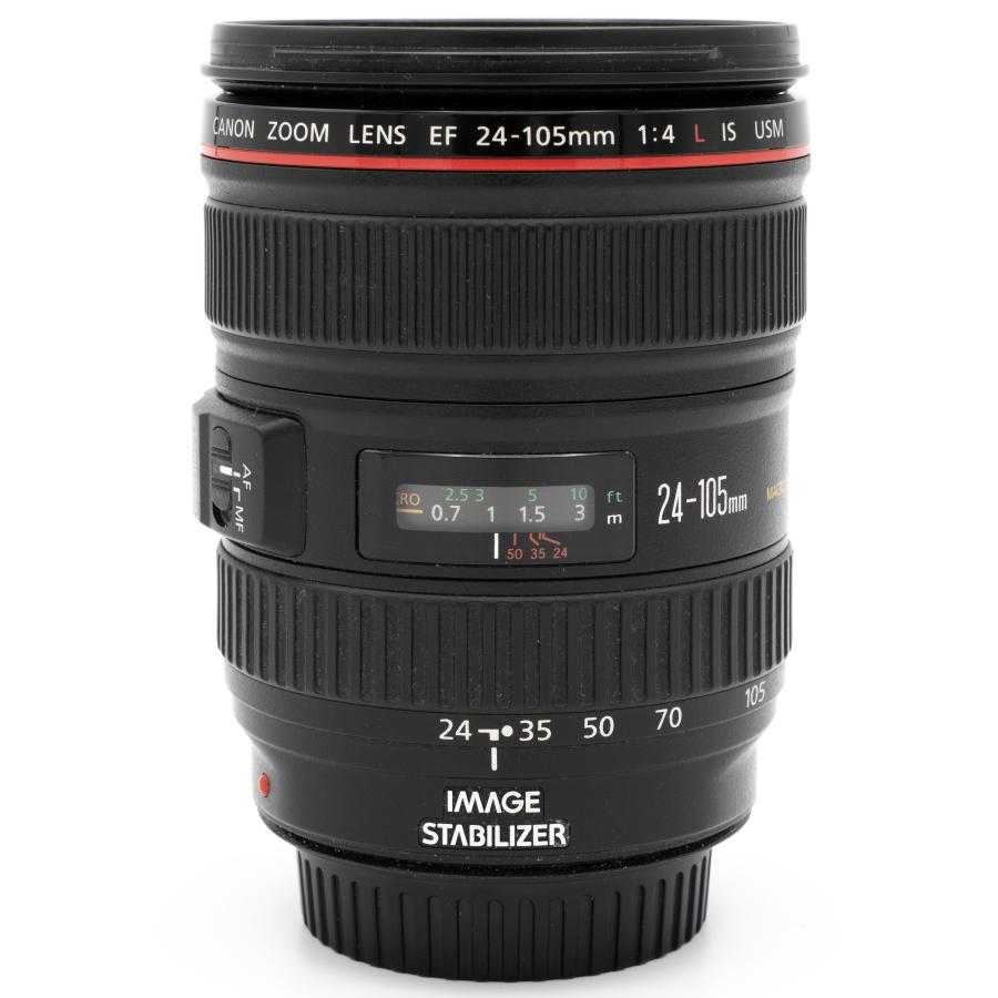 Canon EF 24-105mm f/4L IS USM je profesionálny základný objektív rady L, optimalizovaný pre kinofilmové a dig. zrkadlovky s Full-Frame snímačom. Je to transfokátor (zoomový objektív) s konštantnou svetelnosťou f/4 v celom rozsahu ohniskových vzdialeností vybavený účinným optickým stabilizátorom IS a rýchlym, mimoriadne presným ultrasonickým zaostrovacím motorom USM. Objektív sa vyznačuje excelentnou obrazovou kvalitou, s minimálnou chromatickou vadou a ostrosťou od stredu až po kraje. Objektív je mimoriadne robustnej konštrukcie odolnej voči prachu a vlhkosti, čomu zodpovedá aj jeho zaradenie do špičkovej triedy Canon objektívov L. Vďaka vnútornému ostreniu sa objektív pri ostrení nevysúva. Pri zoomovaní sa z neho vysúva tubus s prednou šošovkou na ktorom je filtrový závit o priemere 77 mm, ktorý sa však neotáča a umožňuje tak bezproblémové použitie polarizačných a prechodových filtrov.