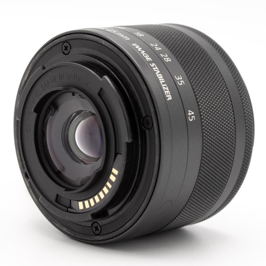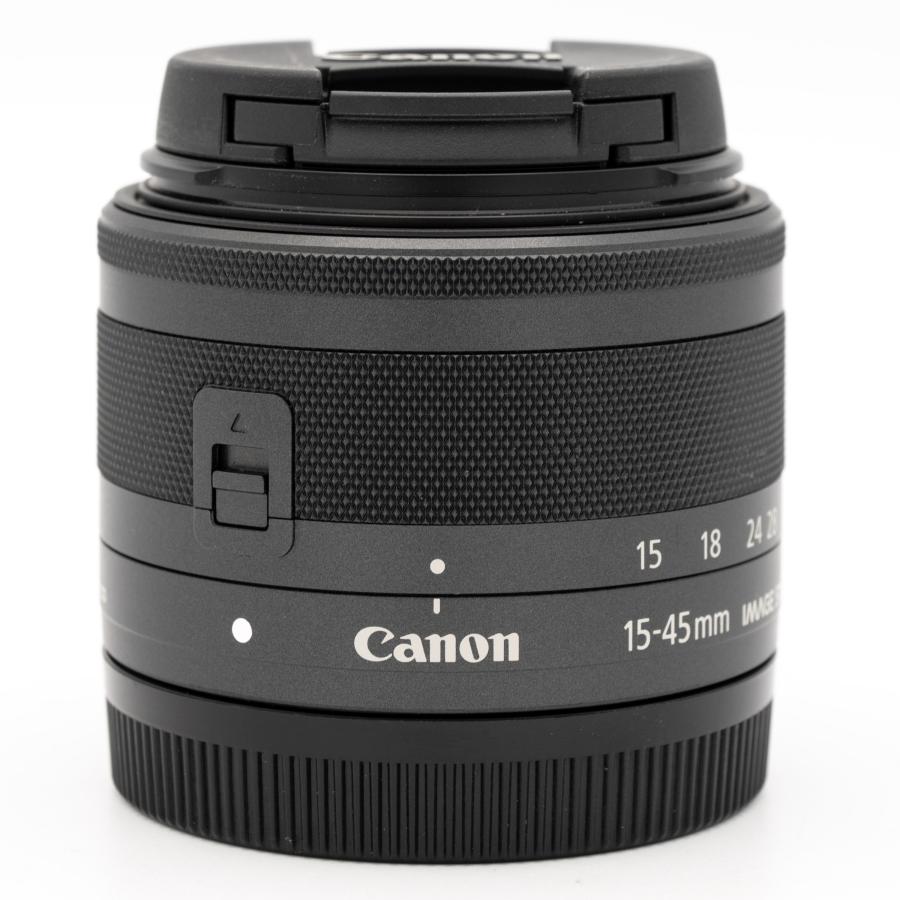 Canon EF-M 15-45mm f/3.5-6.3 IS STM je kompaktný základný objektív s bajonetom Canon EF-M, určený pre kompaktné systémové fotoaparáty Canon EOS M/M3/M10 vybavené snímačmi formátu APS-C. Objektív disponuje ideálnym rozsahom ohniskových vzdialeností 24-72mm (po prepočte na 35mm kinofilm) a štandardnou svetelnosťou f/3.5-6.3. Vo výbave objektívu nechýba optický stabilizátor IS ani bezhlučný krokový STM motor automatického zaostrovania vhodný pre natáčanie videa. Tento univerzálny objektív s výbornú obrazovú kvalitu sa hodí pre fotografovanie krajiniek, architektúry, street, ale aj portrétov. Optická sústava objektívu pozostáva z 10-tich šošoviek zoradených do 9-tich skupín. Dokáže zaostrovať už od 25cm a poskytuje zväčšenie 0,23x. Optická sústava objektívu je zasadená do mimoriadne kompaktného tela objektívu s priemerom 61mm, dĺžkou 45mm a hmotnosťou iba 130g. Je to ideálny základný objektív pre majiteľov fotoaparátov rady Canon EOS M.