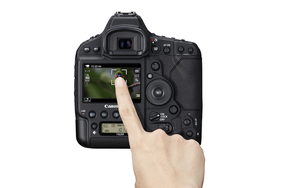 Fotoaparát Canon EOS 1D X Mk.II sa môže pochváliť 3,2“ dotykovým LCD displejom s vysokým 1 620 000 Pix rozlíšením a taktiež novou vrstvou pre vyhladzovanie hrán. Vďaka tejto vrstve je zobrazenie na displeji veľmi čisté a podrobné. Displej využíva technológiu Clear View II, ktorá odstraňuje vzduchovú medzeru medzi displejom a krycím sklom čo výrazne eliminuje vznik tzv. svetelných odrazov. Je to prvý dotykový displej použitý vo Full Frame zrkadlovke Canon a je aktívny iba v režime živého náhľadu, alebo pri natáčaní videosekvencií. V oboch prípadoch môžu užívatelia slobodne vyberať zaostrovací bod dotykom a zväčšovať zobrazenie.