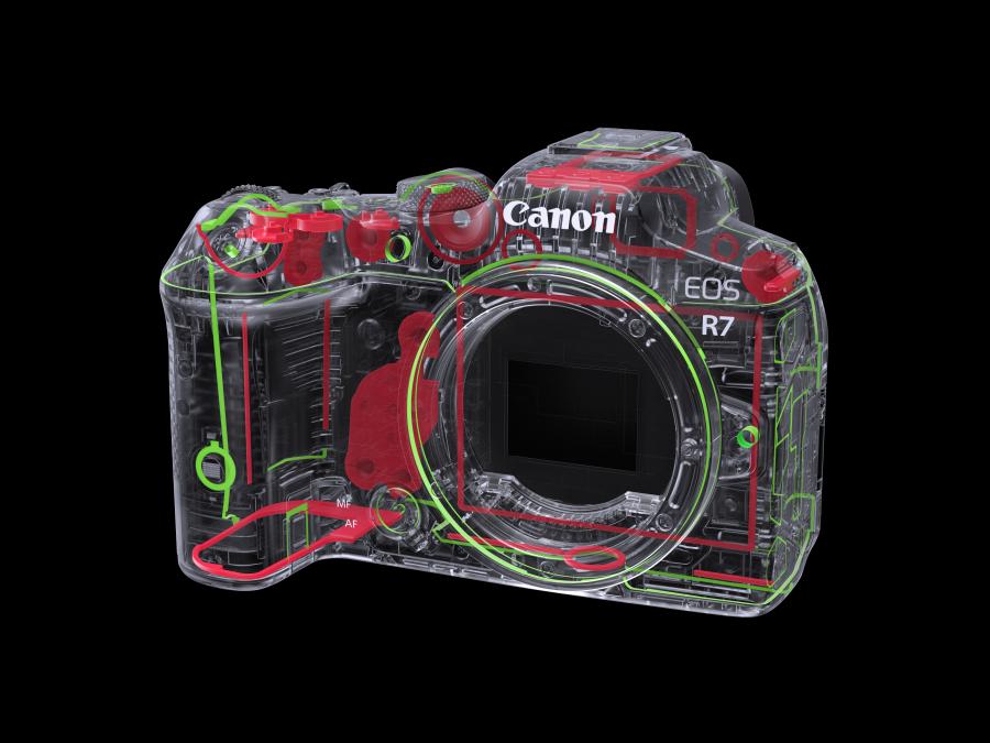 Fotoaparát EOS R7 s hmotnosťou iba 612g, vrátane batérie a pamäťovej karty, ponúka fotografom a tvorcom výrazné vylepšenia a možnosť zmenšiť výbavu oproti digitálnym zrkadlovkám s príslušnými objektívmi. Kompaktný, avšak robustný Canon EOS R7 má konštrukciu odolnú voči poveternostným vplyvom, takže je s ním možné fotografovať aj v náročných podmienkach.
