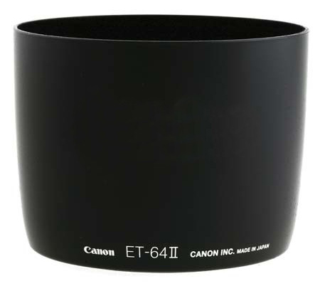 Canon ET-64 II je bajonetová, hrncová slnečná clona určená pre transfokačný (zoom) teleobjektív Canon EF 75-300mm f/4.0-5.6 IS USM. Je vyrobená z kvalitného, matného čierneho plastu a jej vnútorné plochy sú svetlo neodrážajúce. Na objektív sa nasadzuje veľmi jednoducho pomocou bajonetového uchytenia a slúži pre odstraňovanie nežiaducich odleskov svetla vstupujúceho do objektívu od svetelných zdrojov mimo jeho záber. Tieto odlesky môžu negatívne ovplyvniť technickú kvalitu vašich fotografií.