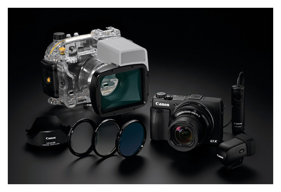 • K dispozícii je veľký výber voliteľného príslušenstva od elektronického hľadáčika Canon EVF-DC1 až po podvodné puzdro Canon WP-DC53.