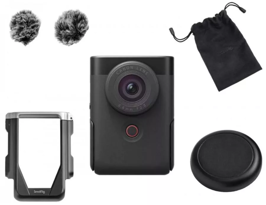 Canon PowerShot V10 je možné zakúpiť ako súčasť dvoch rôznych balíčkov. Štandardná sada s napájacím káblom, mäkkým puzdrom, krytkou objektívu, veternou clonou a pútkom na zápästie sa predáva za 449 EUR. Pre tých, ktorí chcú viac kreatívnych možností, je k dispozícii pokročilá sada navrhnutá v spolupráci so SmallRig, ktorá obsahuje klietku na pripevnenie kruhového svetla alebo externého mikrofónu.