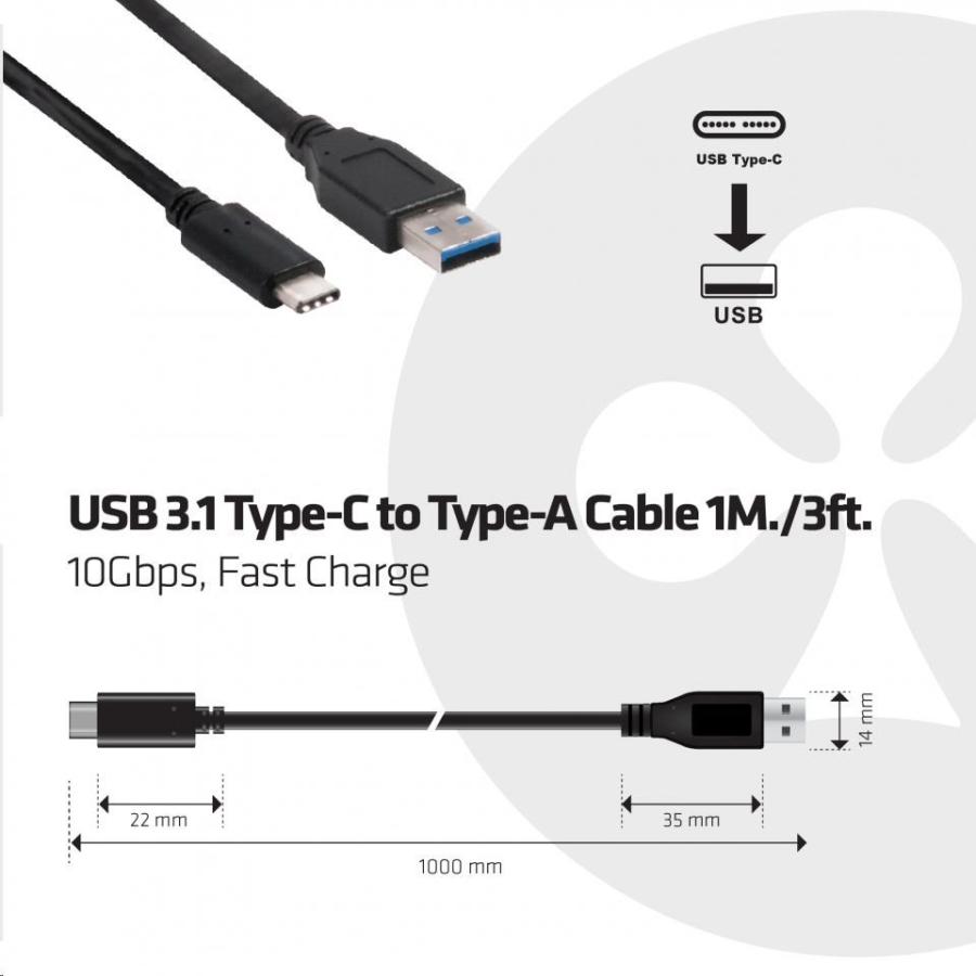 - Club3D Kabel 3.1 Type-C na USB 3.1 Typ A, 10Gbps Power Delivery 60W (M/M), 1m