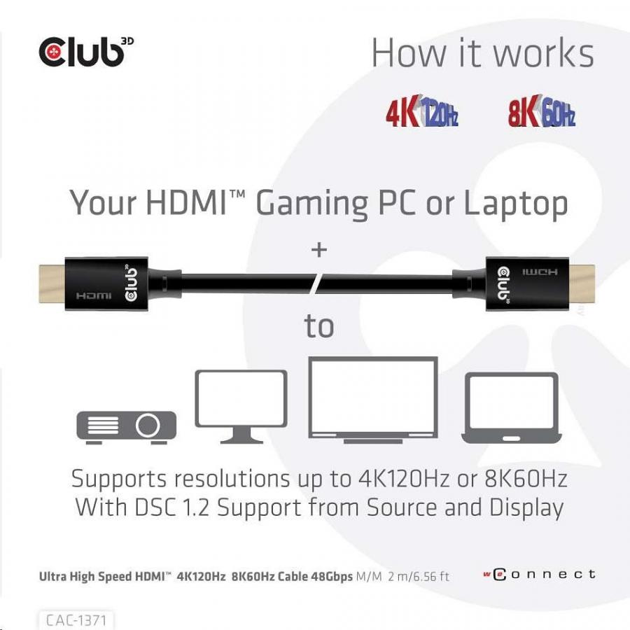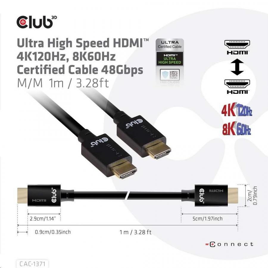 - Club3D Kabel HDMI 2.1 Ultra High Speed 4K 8K60Hz 48Gbps (M/M), 1m