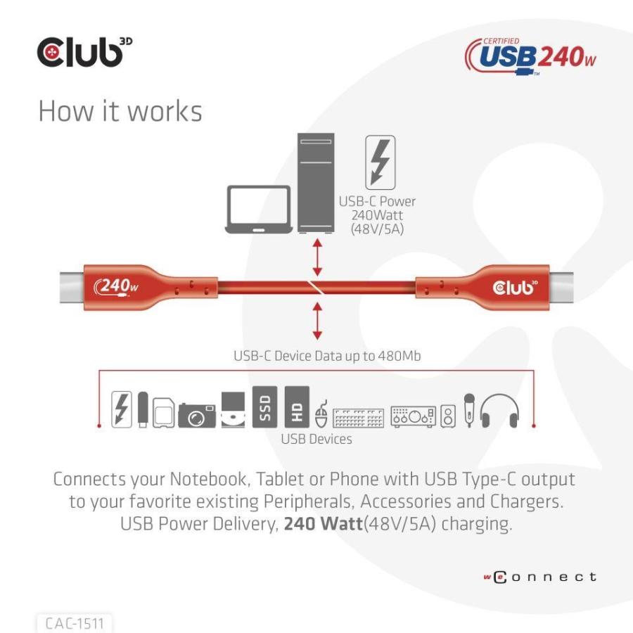 - Club3D Kabel USB-C, PD 240W(48V/5A) EPR M/M 1m