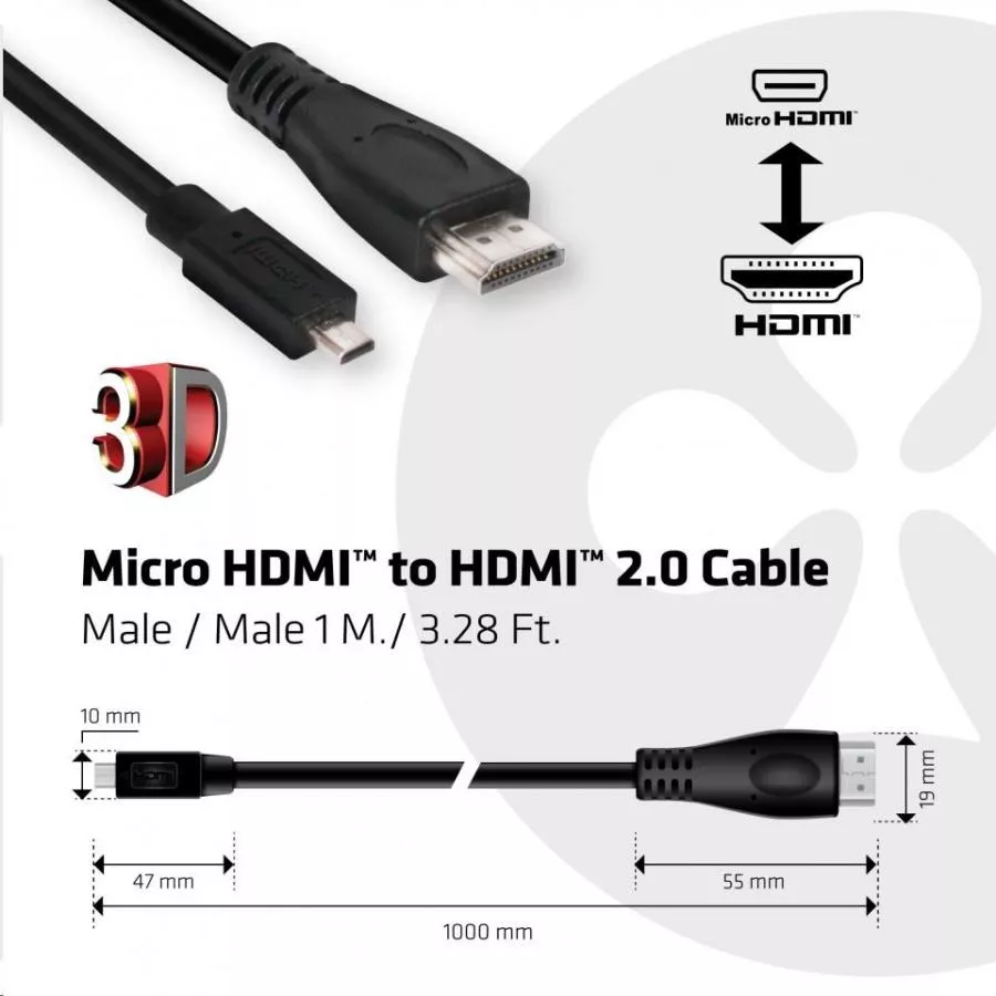 Club3D Micro HDMI na HDMI 2.0 4K60Hz UHD, (M/M), 1m