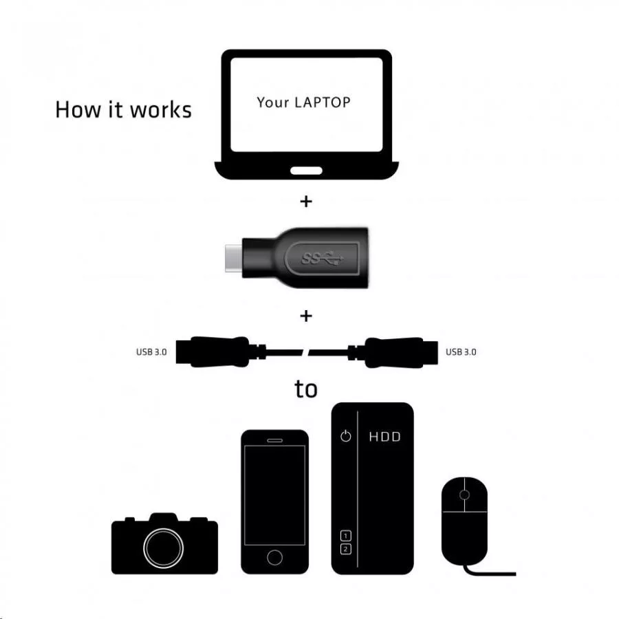 Pripojte zariadenie typu USB typu A k notebookom, tabletom a ultrabookom s rozhraním USB 3.1 typu C.