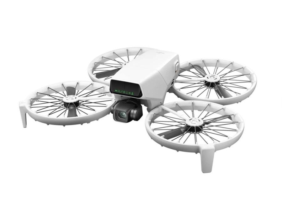 DJI Flip je prvý dron DJI vybavený skladacou ochranou vrtúľ. Ochrana je založená na podpernej štruktúre z uhlíkových vlákien, ktorá váži iba 1/60 tradičného materiálu PC, no napriek tomu si zachováva rovnakú pevnosť. Tento ľahký a odolný dizajn poskytuje komplexnú ochranu, čo umožňuje aj začínajúcim pilotom lietať bez obáv.