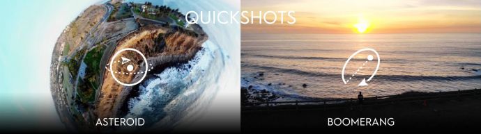 V režime QuickShots si môžete vybrať z režimov Rocket, Dronie, Circle, Helix, Asteroid a Boomerang. Všetky sa aktivujú jednoduchým označením cieľa a potom sa už nemusíte o nič starať. Dron začne sám lietať po vopred nadefinovanej dráhe a jeho palubná kamera zhotový automaticky famózne a efektné zábery. A vďaka mobilnej aplikácii DJI GO 4 môžete navyše tieto úchvatné videá okamžite zdieľať na sociálnych sieťach so svojimi kamarátmi.