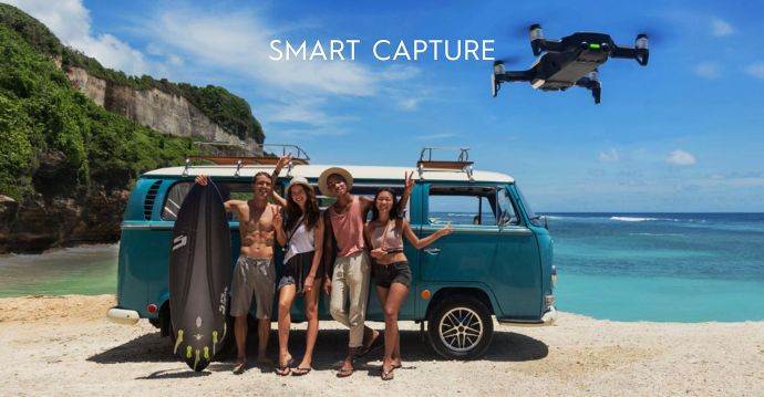 SmartCapture je veľmi jednoduchou funkciou, vďaka ktorej nepotrebujete ma ovládanie dronu konzolu diaľkového ovládania. Stačí ak dron začnete ovládať preddefinovanými gestami rúk. Takto ovládaný dron dokáže fotografovať, natáčať videá, alebo lietať okolo vás podľa vašich pokynov.
