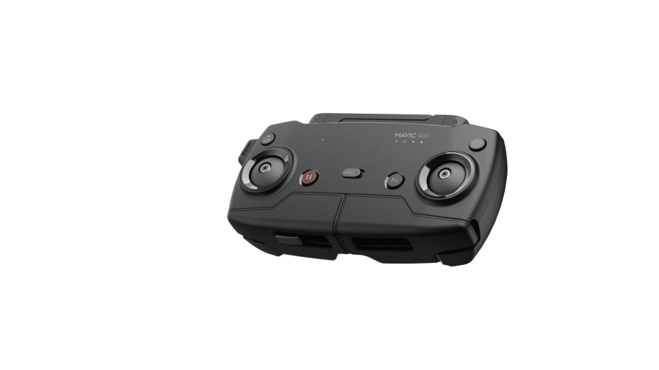 Konzola diaľkového ovládania je rovnako ako dron navrhnutá s kompaktným skladacím dizajnom. Napriek svojej rozkladacej konštrukcie sa podarilo navrhnúť výborný ergonomický dizajn, ktorý využíva dvojicu vyklápacích ramien pre uchytenie vášho smartfónu, ktorého displej po prepojení s konzolou zobrazuje prenos obrazu z hlavnej palubnej kamery. Kompaktnosť konštrukcie v prepravnej konfigurácii podporujú aj skladacie antény a ovládacie páčky, ktoré sa dajú odskrutkovať a uložiť do pre ne určených otvorov na spodku konzoly diaľkového ovládania. Konzola diaľkového ovládania s dronom komunikuje na komunikačných a prenosových rádiových frekvenciách 2400 – 2483GHz / 5725 – 5850GHz a to až do vzdialenosti 4km. Pre prepojenie s smartfónom sú k dispozícii USB konektory Lightning, Micro USB (Type-B) a USB Type-C. Maximálna veľkosť smartfónu, ktorý dokážete na konzolu uchytiť je 160mm x 8,5mm (výška x hrúbka).