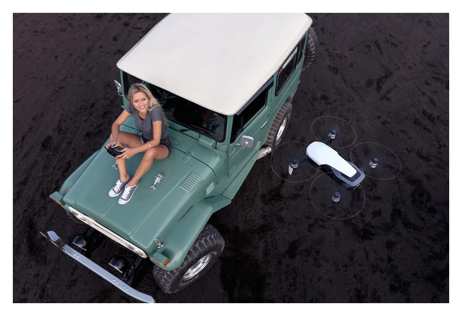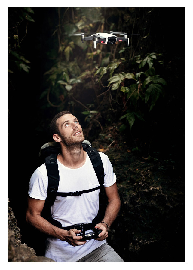 DJI Mavic Air je špičkovo vybavený 4K dron vychádzajúci z úspešnej a obľúbenej rady DJI Mavic. Dron je vybavený veľmi účinným 3-osím stabilizačným gimbalom v ktorom je uchytená 12,33MPix videokamera s CMOS snímačom veľkosti 1/2,3“. Tá dokáže zaznamenávať veľmi kvalitné videozáznamy v rozlíšení až 4K (3840x2160/30p) pri dátovom toku až 100Mb/s, alebo Full HD (1920x1080/120p) pri dátovom toku až 100Mb/s a statické zábery s rozlíšením až 12,33MPix (4056x3040Pix pri pomere strán 4:3). Videozábery a fotografie sa ukladajú do vstavaného dátového úložiska s kapacitou 8GB, ktorú je možné vďaka slotu na pamäťové karty microSDmicroSDHC/microSDCX rozšíriť až o 128GB. Vďaka bohatej senzorovej výbave zastúpenej prijímačom signálu satelitnej navigácie GPS/GLONASS a senzorovému systému FlightAutonomy 2.0 je dron schopný vykonávať vysoko autonómne riadený let. Samozrejmosťou je automatické pristátie v mieste vzletu, ale okrem neho zvládne dron v tzv. „selfie“ letových režimoch (QuickShots) aj let po vopred naprogramovanej dráhe pri ktorom ste pre jeho kameru stredobodom nasnímaných videozáberov. Medzi tieto režimy patria režimy Rocket, Dronie, Circle, Helix, Asteroid a Boomerang. Špeciálnou verziou je potom režim ActiveTrack v ktorom vás dron sleduje a natáča pri vašich outdoor aktivitách.