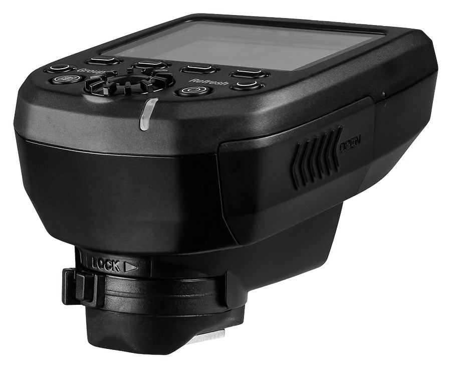 • Bezdrôtový diaľkový rádiový odpaľovač systémových bleskov pracujúci na frekvencii 2,4GHz