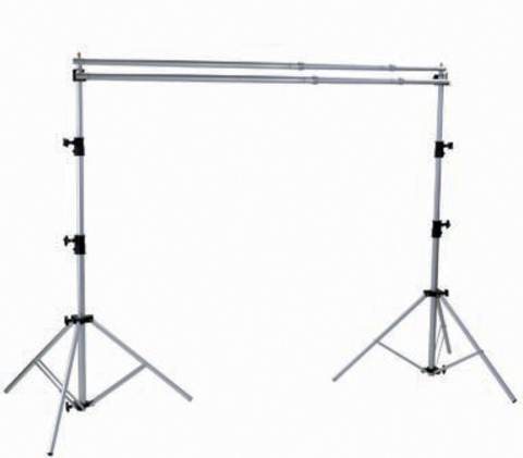 Držiak pozadia teleskopický na 2 role pozadia. Maximálna výška: 2,5 m Maximálna šírka: 3,15 m