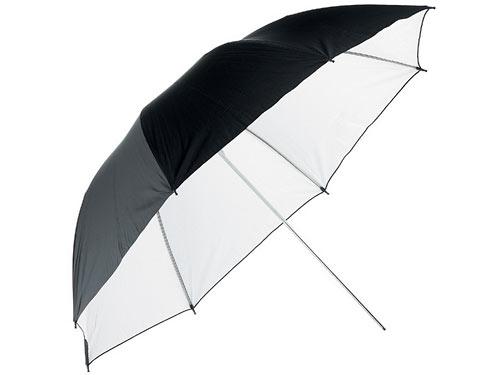 Štúdiový dáždnik s priemerom 105 cm bielej farby.