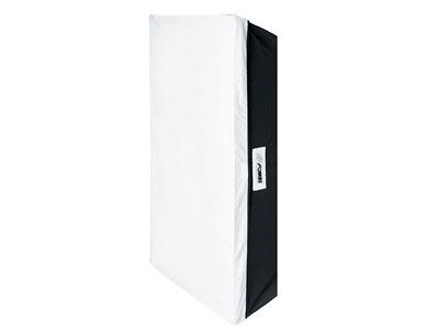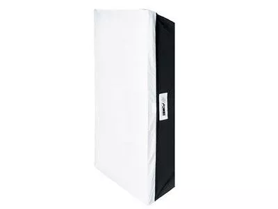 Predná látka sa nasadzuje na softbox z vonkajšej časti kraja softboxu a zaistí sa ešte pomocou suchých zipsov. Prostredná látka sa upína do softboxu pomocou patentov.