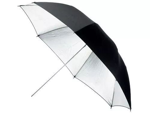 Štúdiový dáždnik s priemerom 105 cm striebornej farby.