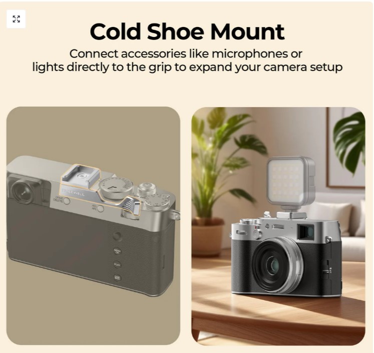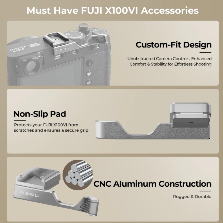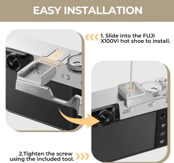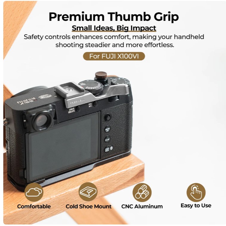- Freewell Fuji X100VI Thumb Grip with Cold Shoe Mount (Silver)