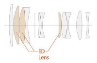 • 9 skupín / 11 optických členov (3 nízko rozptylové ED šošovky)