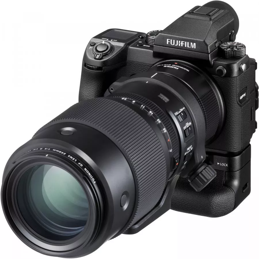je 1,4 x telekonvertor pre GF Mount. Pripojenie telekonvertora ku Fujinonu GF250mF4 R LM OIS WR umožňuje snímanie teleobjektívu v ohniskovej vzdialenosti 350 mm (približne 277 mm vo formáte ekvivalentu 35 mm) pri zachovaní vynikajúcej kvality obrazu. Maximálna clona sa zníži o jednu stopu F. Keďže šošovka i telekonvertor sú vysoko kvalitné, pri teleobjektíve nedochádza ku žiadnemu zhoršeniu obrazu.