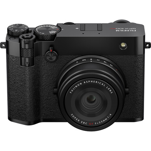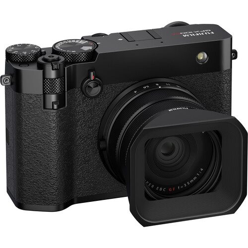 FUJIFILM vyvinul nový objektív 35mm f/4 exkluzívne pre GFX100RF. Ten je vybavený lamelovou uzávierkou, vďaka čomu sa skrátila vzdialenosť medzi zadnou časťou objektívu a snímačom, čím sa dosiahlo významné zmenšenie veľkosti fotoaparátu. Lamelová závierka umožňuje fotografovanie s bleskom bez ohľadu na rýchlosť závierky, čo zvyšuje flexibilitu využitia blesku aj pre fotografovanie vonku za denného svetla.
