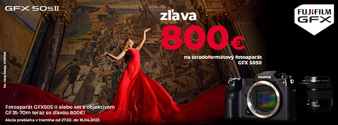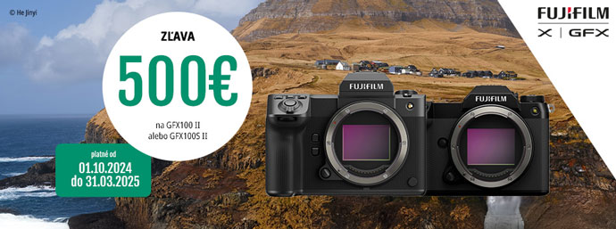 Ak si teraz zakúpite jeden z produktov Fujifilm GFX môžete získate zľavu až 500 €. Akcia platí od 13.11.2025 do 14.1.2026, len na produkty dodané počas trvania akcie. Zľava je rovno započítaná v cene produktov.