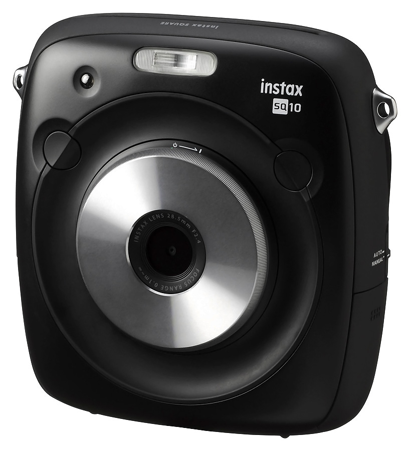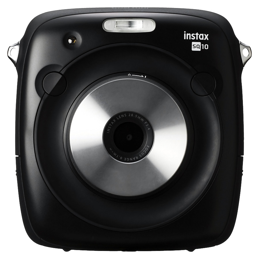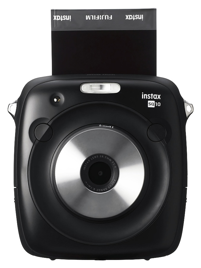 Fujifilm Instax Square SQ10 je unikátny koncept hybridného fotoaparátu pre instantnú fotografiu, ktorý kombinuje výhody digitálneho fotoaparátu s výhodami tlačiarne pre okamžitú tlač instantnej fotografie. Fotoaparát používa pre zachytávanie obrazu 1/4“ CMOS snímač s rozlíšením 1920x1920 Pix, ktorý fotografie ukladá do vstavanej vnútornej pamäte fotoaparátu (pre cca 50 fotografií) pre bezproblémovú tlač, alebo na voliteľnú pamäťovú kartu microSD/microSDHC. Je vybavený centrálne umiestneným pevným 28,5mm objektívom so svetelnosťou f/2,4, dvojicou spúští po stranách objektívu na prednej strane (pohodlné používanie aj pre ľavákov), vstavaným bleskom so smerným číslom GN 8 a veľkým TFT LCD displejom s uhlopriečkou 3“ a rozlíšením 460 000Pix na zadnej strane fotoaparátu. Pre okamžitú tlač instantnej fotografie využíva fotoaparát vstavanú tlačiareň na instantný kazetový film štvorcového formátu Fujifilm Instax Square o rozmeroch 62x62mm. Jedna kazeta tohto filmu pojme 10 ks tohto filmu.