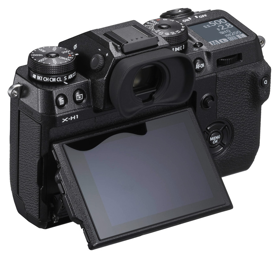 Fujifilm X-H1 je špičkový kompaktný systémový fotoaparát vybavený 24,3MPix X-Trans CMOS III snímačom formátu APS-C bez Low Pass filtra, ktorý je uložený v 5 osiach stabilizovanom ráme stabilizátora IBIS (In Body Image Stabilizer) s účinnosťou až 5,5 EV stupňov. Snímač s pomerom strán 3:2 je kalibrovaný na natívnu citlivosť ISO 200 – 12800. Snímaču asistuje výkonný procesor spracovania obrazu X-Processor Pro, vďaka ktorému môžete fotografovať rýchlosťou až 14obr./s (pri elektronickej uzávierke) a to v rozsahu rozšírenej citlivosti na ISO 100 – 51200. Procesor sa okrem redukcie šumu a spracovania fotografií, využíva aj pre vyhodnocovanie presnosti zaostrovania a vyhodnotenie automatickej expozície. Automatický hybridný zaostrovací systém založený na 325 zónach pre fázovú detekciu, ktoré sú ohraničené plochou s kontrastnou detekciou dokáže spoľahlivo zaostriť za menej ako 0,06sec. Pre vyhodnocovanie presnej expozície sa fotoaparát spolieha na 256 zónový TTL systém. Fotoaparát je vybavený úplne novou spúšťou s tichým a hladkým chodom, ktorá nemá klasické dve polohy. Stláča sa až na doraz pričom fotoaparát už v tom momente dotlačenia a exponovania fotografie má dávno zaostrené. Korunkou samotného fotoaparátu je jeho luxusne veľký elektronický OLED hľadáčik s 0,5“ uhlopriečkou, zväčšením 0,75x, rozlíšením 3,69MPix, obnovovacou frekvenciou 100obr./sec. a opozdením iba 0,005sec. Hľadáčik je tak 1,6x svetlejší a má 2x rýchlejšiu odozvu senzora priblíženia oka ako ktorýkoľvek predchádzajúci hľadáčik z produkcie Fujifilm. Novinkou je aj použitie 1,28“ stavového displeja a veľkého 3“ dotykového výklopného LCD displeja na zadnej strane. Zadný LCD displej s 3“ uhlopriečkou, rozlíšením 1,04MPix a veľkým možnosťami polohovania +45° hore -90° dole a 60° do strán sa dá používať vo videu k pohodlnému preostrovaniu v zábere. Fotoaparát je vybavený novými videofunkciami, zvláda Cinema 4K aj 4K videozábery s frekvenciou 30p/25p, alebo Full HD video s vysokou frekvenciou 100p/120p. Pre zvýšenie vysokého dynamického obrazu vo videu využíva fotoaparát možnosť F-Log log-gamma čo pomáha zvýšiť možnosti pri post-procese videa. Pri fotografovaní si môžete vybrať z až 16 rôznych simulácií filmového materiálu. Pri fotení v zložitých svetelných situáciách ako napr. osvetlenie žiarivkou, môžete využiť funkciu „Flickering reduction“, ktorej aktivovaním začne fotoaparát automaticky sledovať frekvenciu pulzujúceho svetla a podľa nej načasuje expozíciu tak aby sa dosiahli konštantné výsledky na všetkých záberoch série. Fotoaparát je výborne vybavený a okrem štandardnej Hot-Shoe pätice na blesky a micro-HDMI konektora (Type D) je vybavený vysokorýchlostným micro-USB 3.0 konektorom s rýchlosťou 5GB/s, 2,5mm jackom pre káblovú spúšť, 3,5mm jackom pre externý mikrofón. Pre bezdrôtový prenos dát a diaľkové ovládanie vo výbave nechýba ani 2,4GHz Wi-Fi (IEEE802.11b/g/n) a nízko energetický 2,4GHz Bluetooth 4.0. K diaľkovému ovládaniu môžete využiť aplikáciu, ktorú si viete stiahnuť do vášho smartfónu alebo tabletu. Telo fotoaparátu je vyrobené z veľmi ľahkých a pevných hliníkových zliatin vďaka ktorým váži pri rozmeroch 139,8 x 97,3 x 85,5mm iba 673g (vrátane batérie a pamäťovej karty). Fotoaparát je utesnený voči prachu, stekajúcej vode, odolá vlhkosti 10 - 80% a bezchybne pracuje pri teplotách od -10°C až po +40°C.