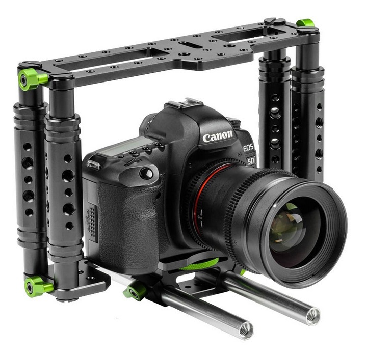 Genesis Cam Cage je kvalitný rámový držiak pre nahrávanie videí. Je vyrobený z kvalitného hliníka a je vhodný pre všetky zrkadlovky. Disponuje dvadsiatimy 1/4 "a šesťnástimi 3/8" závitmy pre všemožné príslušenstvo v kombinácii ktorú práve potrebujete. Spodná časť je orezaná pre pohodlný prístup k batérii. Špecifikácie: