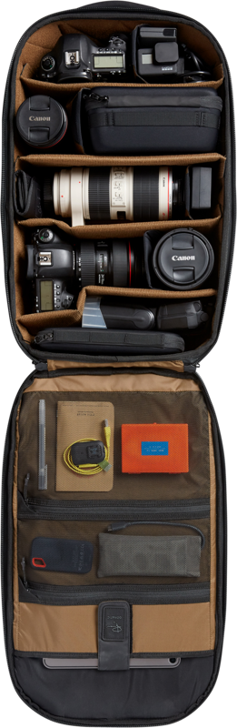 Zamerané na pohodlie Vieme, že všetko fotografické vybavenie sa prenesie, preto sme navrhli vnútorné podpery, ktoré pomáhajú rozložiť váhu, a tiež niekoľko vonkajších nastavovacích podporných popruhov a odnímateľný bedrový pás. Všetko je navrhnuté tak, aby vám to pri nosení batohu pomohlo uľahčiť náklad.