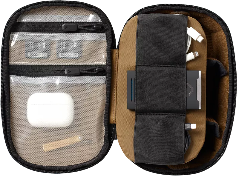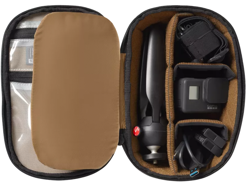 Tento organizér je vybavený vreckami a organizáciou pre všetky menšie zariadenia. Majte svoje pamäťové karty, káble, čítačky kariet, akčnú kameru, nabíjačky, adaptéry a oveľa viac usporiadané a v bezpečí.