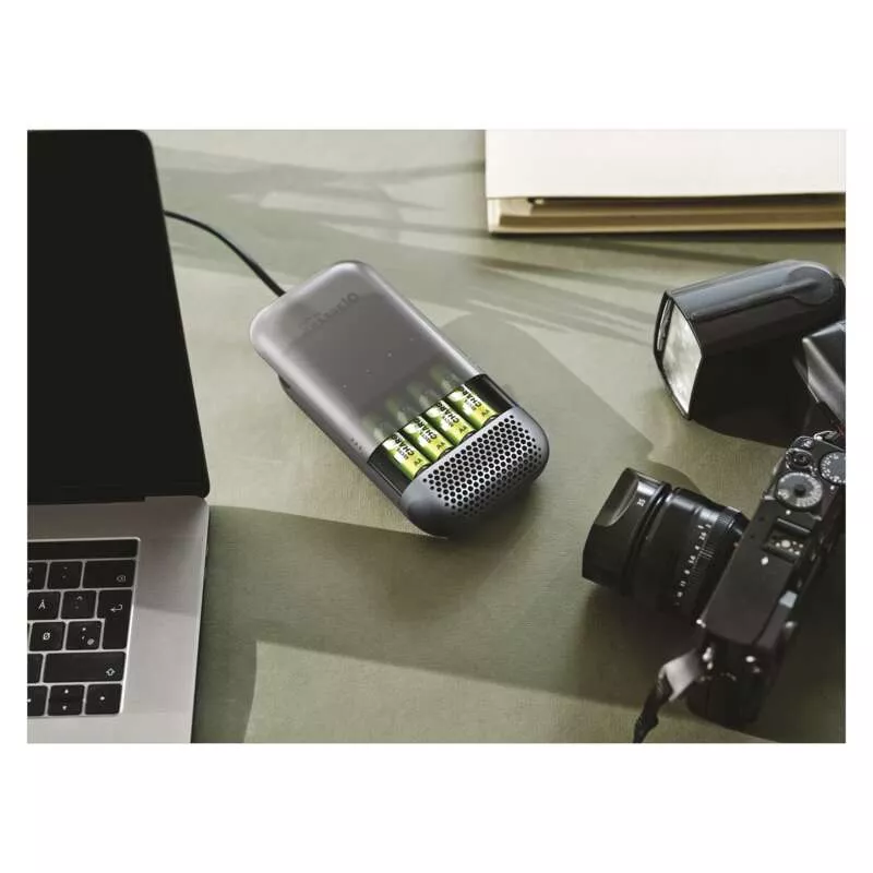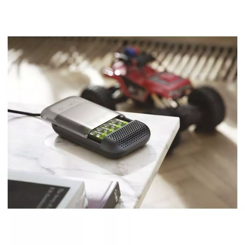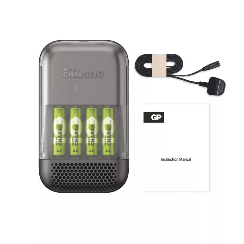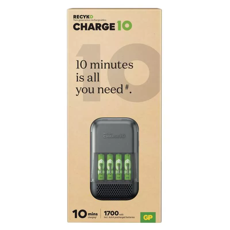Nechcete zaťažovať životné prostredie opakovaným kupovaním jednorazových batérií, ale zdĺhavý proces nabíjania vás otravuje? S GP Recyko Charge 10, najrýchlejšou nabíjačkou na svete, budú vaše batérie spoľahlivo nabité za 10 minút. Nabíjačka vás poteší aj ochranou proti prehriatiu, režimom ECO na šetrné nabíjanie batérií NiMH, plne automatickým inteligentným nabíjaním a maximálne tichou prevádzkou. Nabíjačka, ktorá si poradí so všetkými typmi batérií AA a AAA, obsahuje aj 4 ekologické batérie AA s kapacitou 1 700 mAh na rýchle nabíjanie, ktoré vydržia viac ako 700 nabíjacích cyklov.
