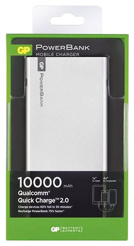 GP PowerBank FP10MB 10000mAh je šikovná Líthium-Polymérová power banka s kapacitou až 10000mAh, ktorá je vybavená technológiou Qualcomm® Quick Charge™ 2.0 pre veľmi rýchle nabíjanie. Za 30 min dokáže nabiť akumulátor bežného smartfónu až na 60%. Oproti bežným power bankám dokáže nabíjať až o 75% rýchlejšie.
