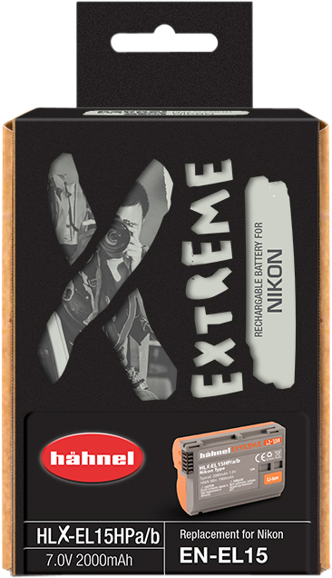 Hähnel Extreme HLX-EL15HP je alternatívna batéria k originálnej batérii Nikon EN-EL15, ktorú však v mnohých ohľadoch predbehne! Nielen, že vydrží o 25% snímok dlhšie ako originál, navyše má veľmi nízky samovybíjací efekt. Nabitie neklesne pod 80% kapacity (testované 28 dní pri teplote 25°C). Je možné ju znovu nabiť až 500-krát na plnú kapacitu.