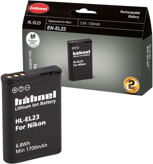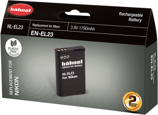 Hähnel HL-EL23 je alternatívna batéria k originálnej batérii Nikon EN-EL23. Batéria je vyrobená z vysoko kvalitných článkov a disponuje ochranným obvodom proti preťaženiu a skratu.