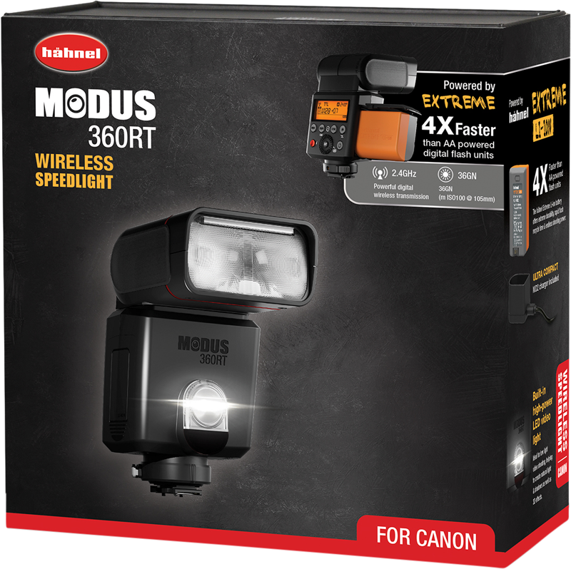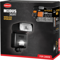 Hähnel Modus 360RT je výkonný blesk, ktorý je napájaný vysokokapacitnou Li-Ion batériou Hähnel Extreme HLX-MD2 a disponuje vstavaným 2,4 GHz bezdrôtovým vysielačom a prijímačom s dosahom viac ako 40 metrov.