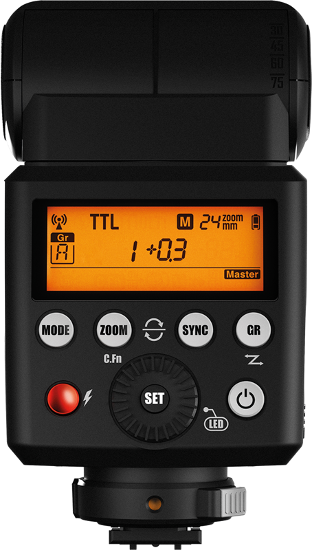 Obsahuje všetky funkcie, ktoré od moderného blesku očakávate - možnosť otáčania bleskovej hlavy v ľubovoľnom smere, automatický reflektor zoomu s pokrytím 24-105 mm (ohnisková vzdialenosť celej snímky), veľký a jasný LCD displej, vysoko-rýchlostná synchronizácia, synchronizácia druhej lamely a stroboskopický blesk. S maximálnym smerným číslom 36 (pri ISO 100 a ohniskovej vzdialenosti 105mm) dáva dostatok svetla pre väčšinu objektov.