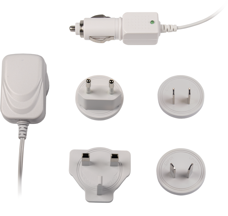 Koncovky do elektrických zásuviek: 1x EU koncovka, 1x UK koncovka a 1x US koncovka