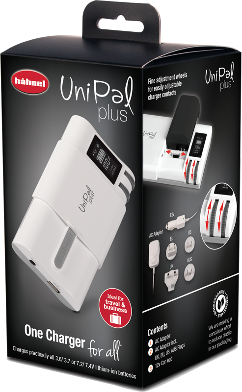 Hahnel Powerstation Unipal Plus je univerzálna rýchlonabíjačka na všetky typy nabíjateľných akumulátorov. Nabíjačkou je možné nabíjať akumulátory všetkých typov, značiek a technológií Líthium-Polymer aj Líthium-Ion. S nabíjačkou je možné nabíjať akumulátory typu AA, AAA ako aj rôzne typy akumulátorov do fotoaparátov, kamier, mobilov a iných zariadení ako napr. USB zariadení. V balení verzie World Edition je pribalená EU koncovka, UK koncovka, US koncovka a 12V autokonektor.