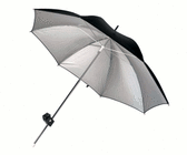 Hama strieborný dáždnik s priemerom 90 cm a s kockou so sánkami pre blesk.