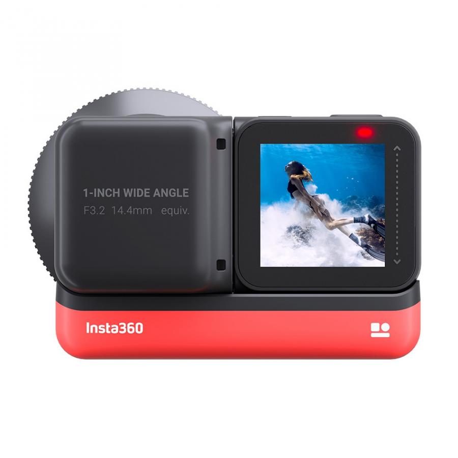 Vodotesná akčná kamera Insta360 ONE R s modulom 1-Inch - objektív s jednopalcovým čipom značky LEICA. Moduly je možné jednoducho meniť. Rozlíšenie videa až 5.3K pri 30fps. Fotografia v rozlíšení 19 MPx.