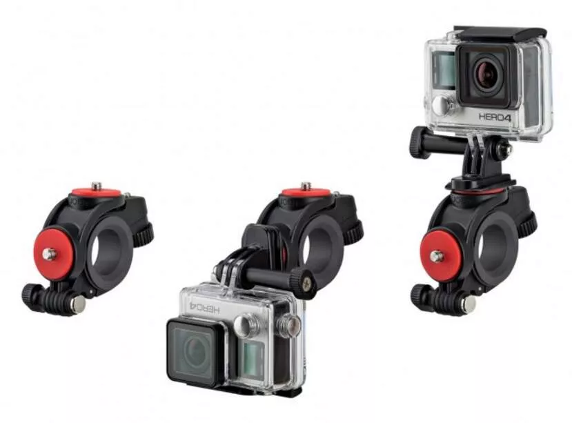 Praktický držiak určený pre stabilné a bezpečné uchytenie outoorovej kamery, fotoaparátu, navigácie alebo mobilu na riadítka bicykla, motorky, golfového vozíku apod.